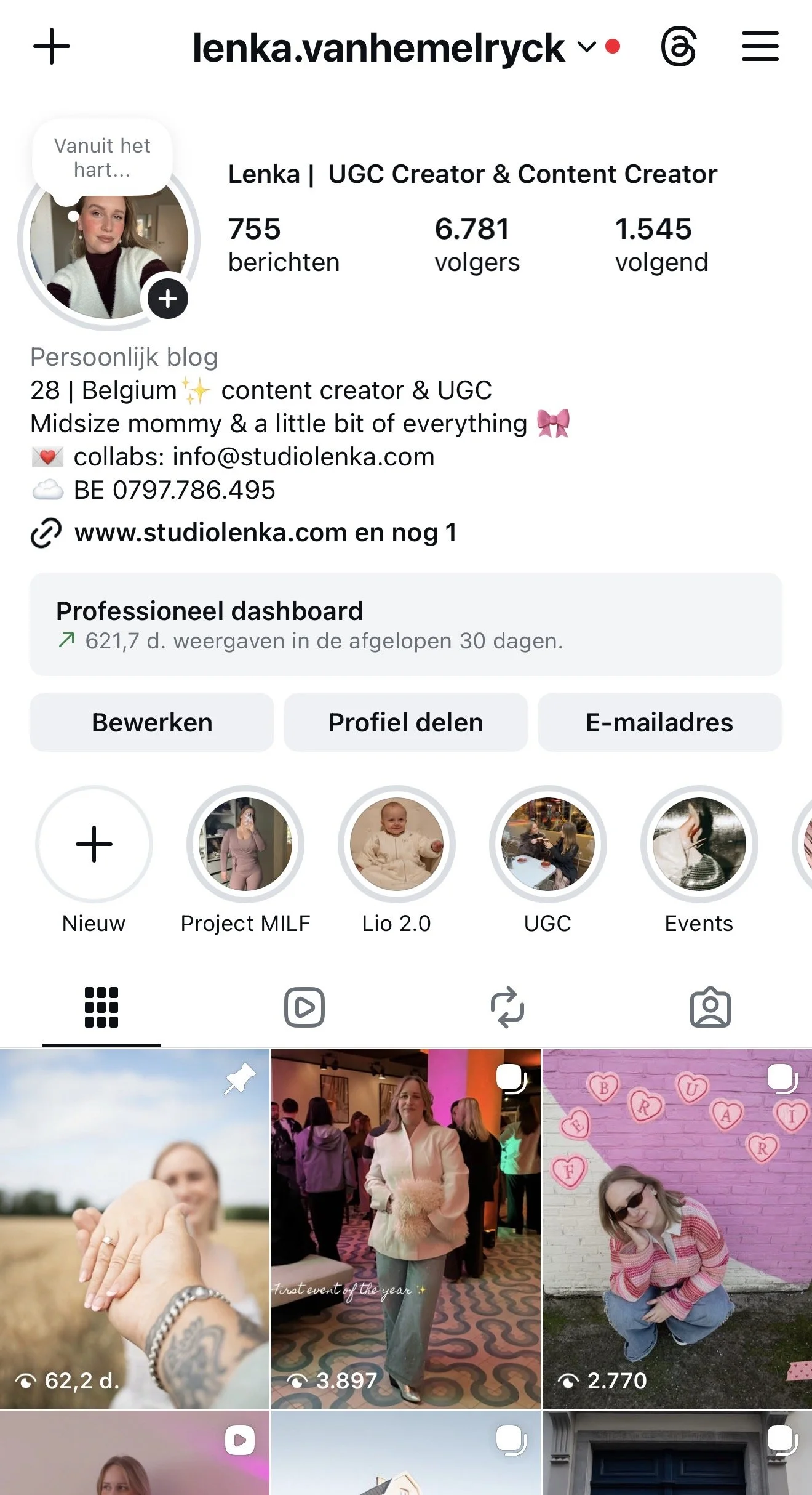 Op mijn eigen socials wil ik een echte connectie opbouwen met de vrouwen die mij volgen. Natuurlijk deel ik ook wel samenwerkingen met merken, maar altijd op een manier die klopt met wie ik ben en wat ik sowieso al zou delen. Geen schreeuwerige reclame, geen geforceerde posts — wel merken die naadloos passen in mijn verhaal en mijn dagelijkse leven en echt wil delen met mijn community.